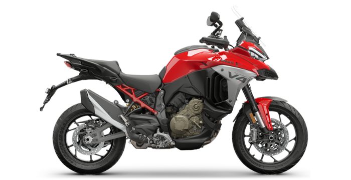 2025 Multistrada V4 सीरीज़ को Ducati Red, Thrilling Black और Arctic White कलर स्कीम में लॉन्च किया गया है।